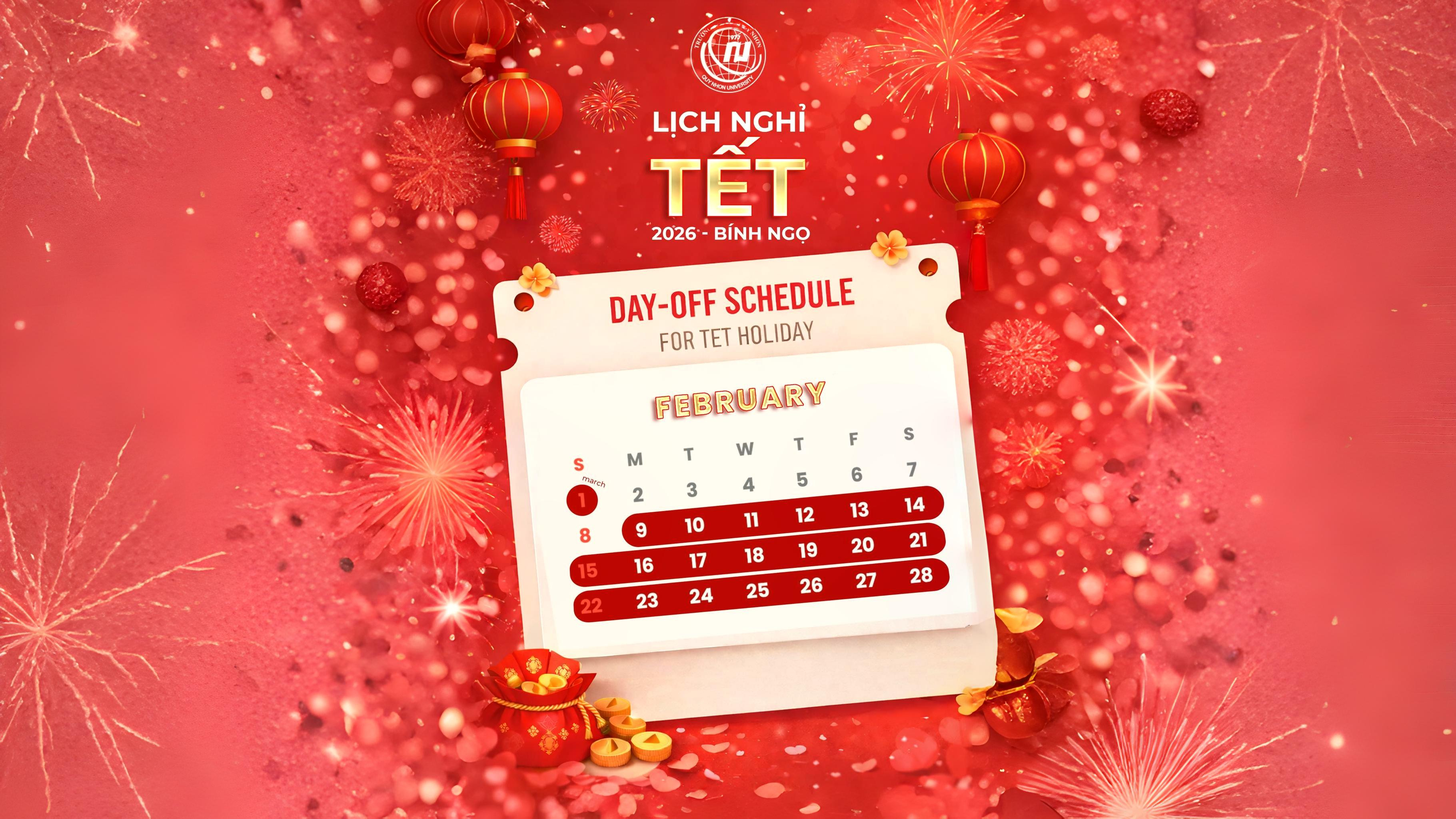 THÔNG BÁO: LỊCH NGHỈ TẾT NGUYÊN ĐÁN BÍNH NGỌ CHO SINH VIÊN QNU