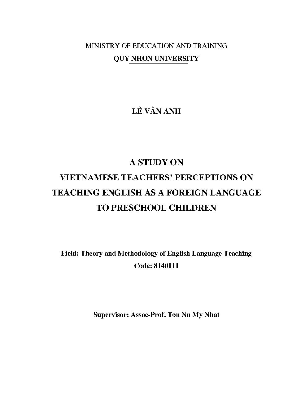 A study on Vietnamese teachers' perceptions on teaching English as a foreign language to preschool children = Nghiên cứu về nhận thức của giáo viên Việt Nam về việc dạy tiếng Anh như một ngoại ngữ cho trẻ mầm non