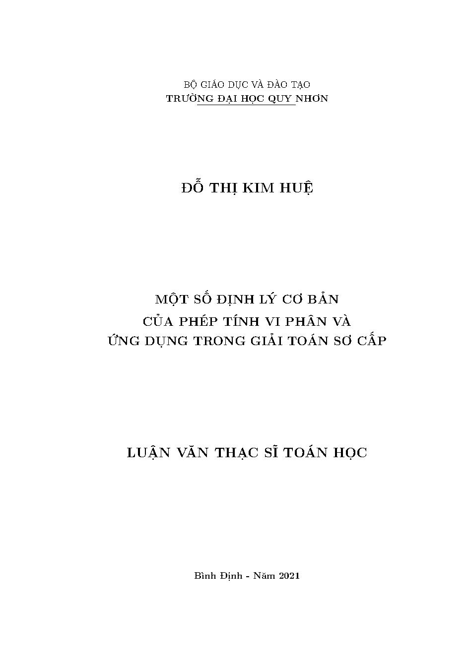 Một số định lý cơ bản của phép tính vi phân và ứng dụng trong giải toán sơ cấp