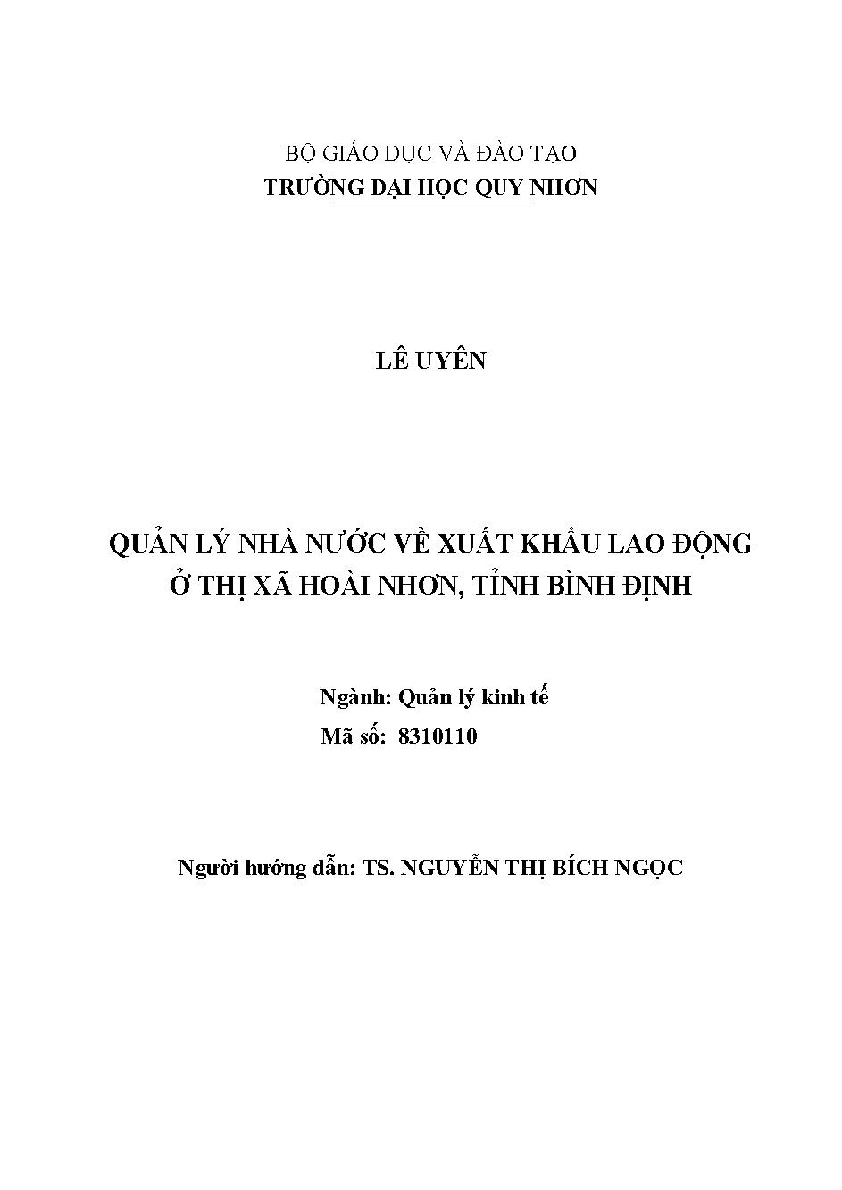 Quản lý nhà nước về xuất khẩu lao động ở thị xã Hoài Nhơn, tỉnh Bình Định