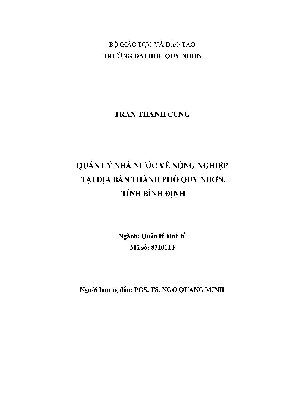 Quản lý nhà nước về nông nghiệp tại địa bàn thành phố Quy Nhơn, tỉnh Bình Định
