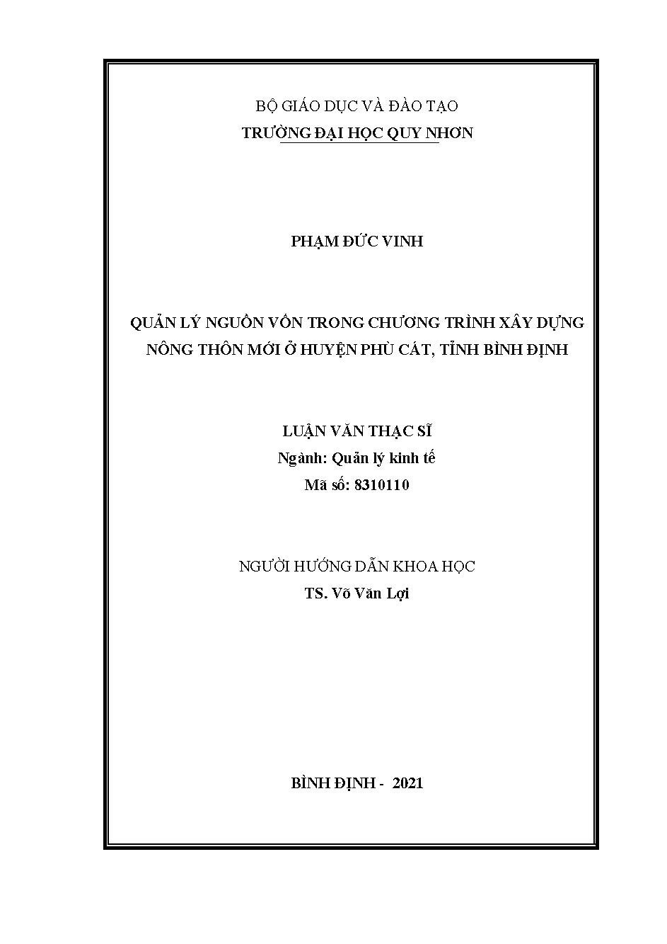 Quản lý nhà nước về đầu tư xây dựng cơ bản từ nguồn vốn ngân sách nhà nước trên địa bàn thành phố Quy Nhơn, tỉnh Bình Định