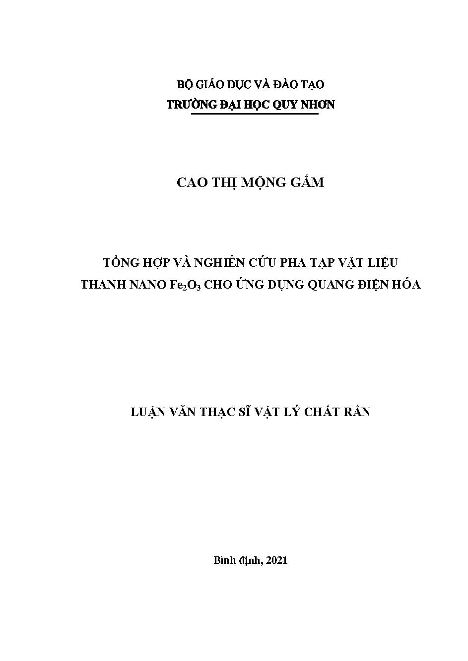 Tổng hợp và nghiên cứu pha tạp vật liệu thanh nano Fe2O3 cho ứng dụng quang điện hóa