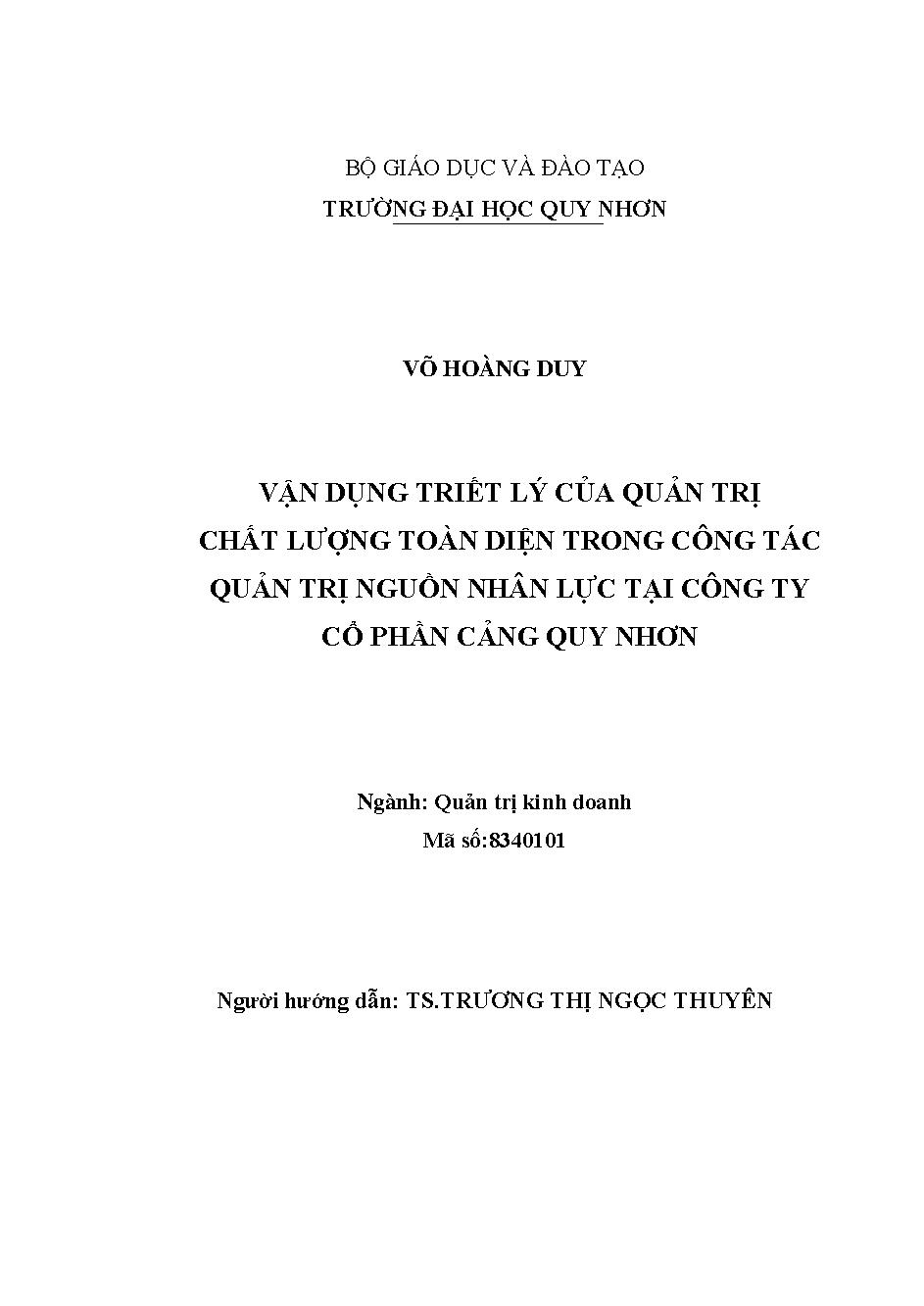 Vận dụng triết lý của quản trị chất lượng toàn diện trong công tác quản trị nguồn nhân lực tại Công ty Cổ phần Cảng Quy Nhơn