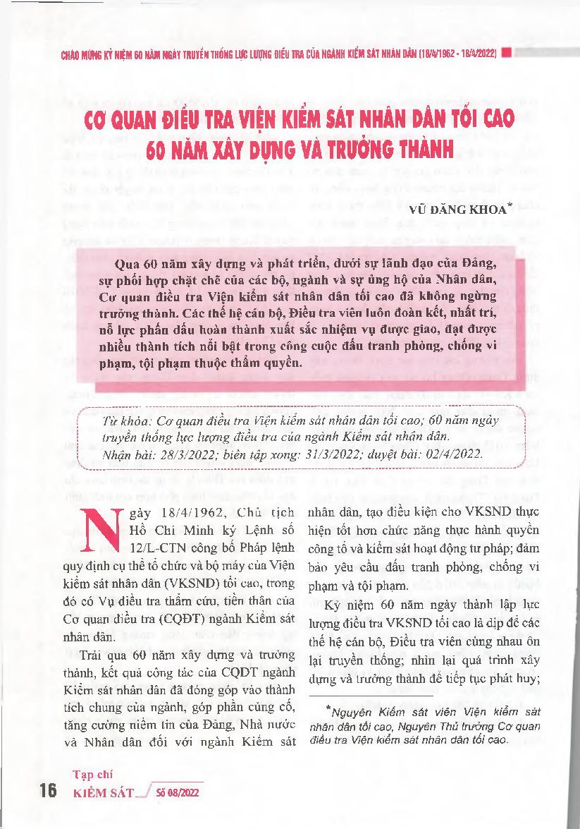 Cơ quan điều tra viện kiểm sát nhân dân tối cao 60 năm xây dựng và trưởng thành