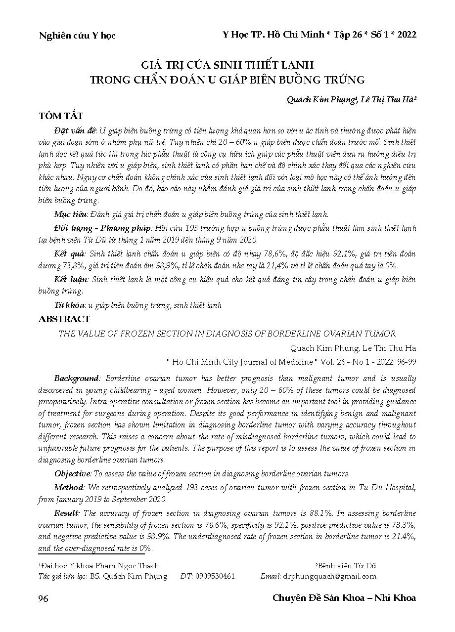 Giá trị của sinh thiết lạnh trong chẩn đoán u giáp biên buồng trứng