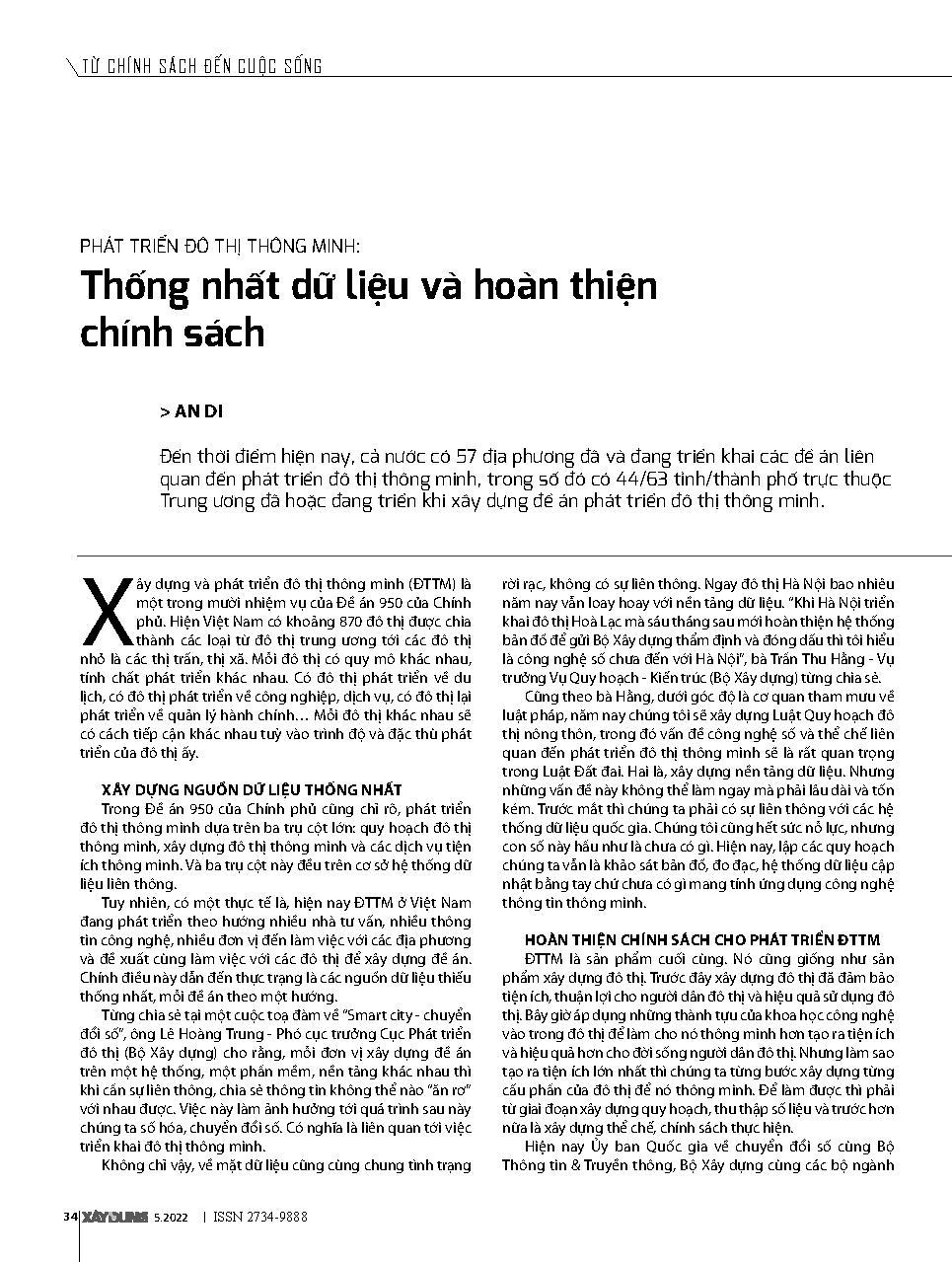 Phát triển đô thị thông minh: Thống nhất dữ liệu và hoàn thiện chính sách