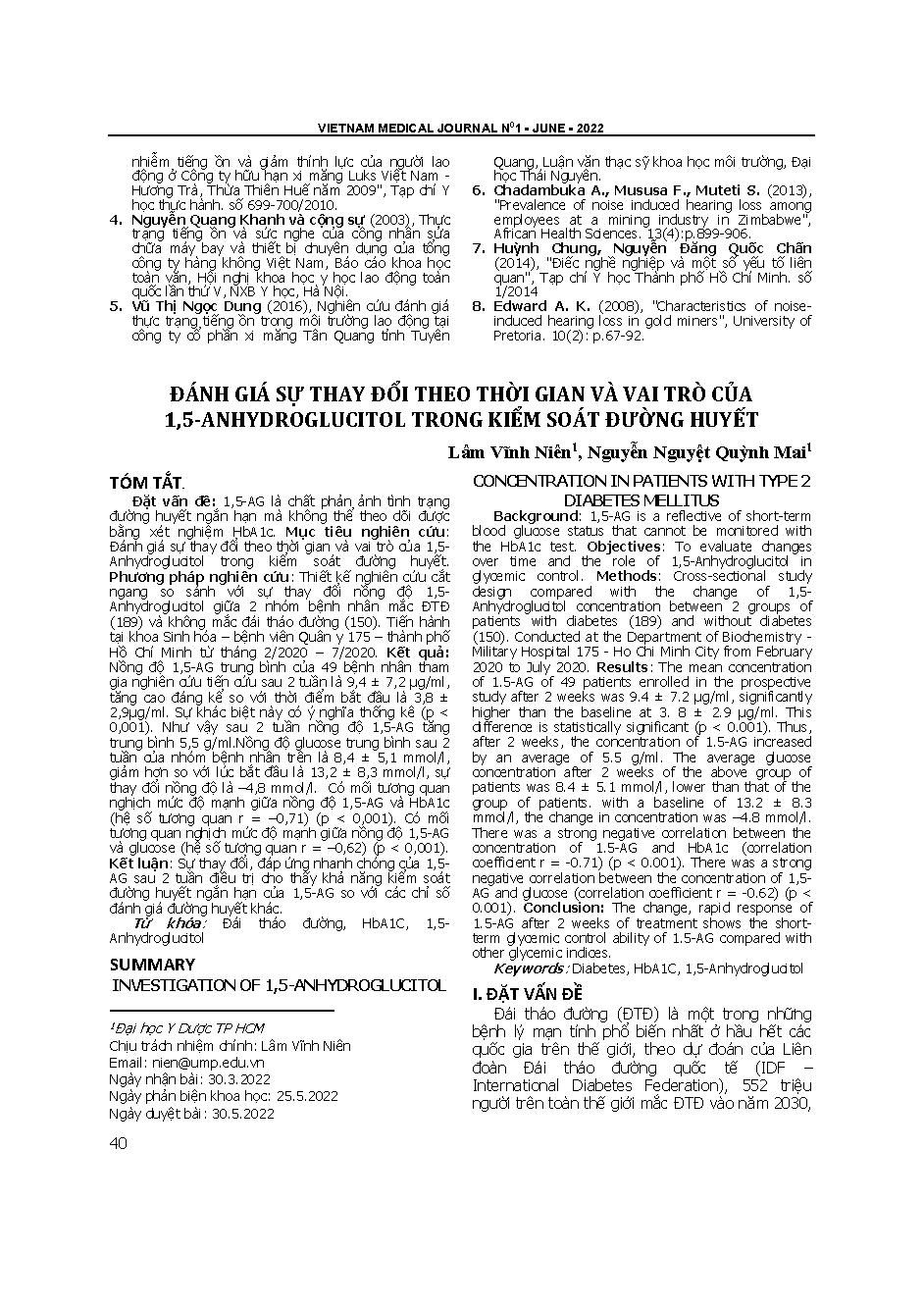 Đánh giá sự thay đổi theo thời gian và vai trò của 1,5-anhydroglucitol trong kiểm soát đường huyết = Investigation of 1,5-anhydroglucitol concentration in patients with type 2 diabetes mellitus