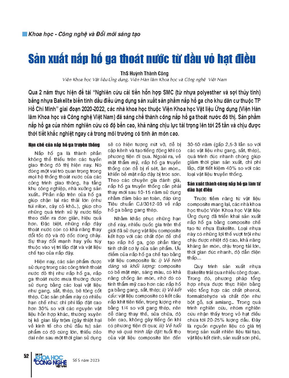 Sản xuất nắp hố ga thoát nước từ dầu vỏ hạt điều