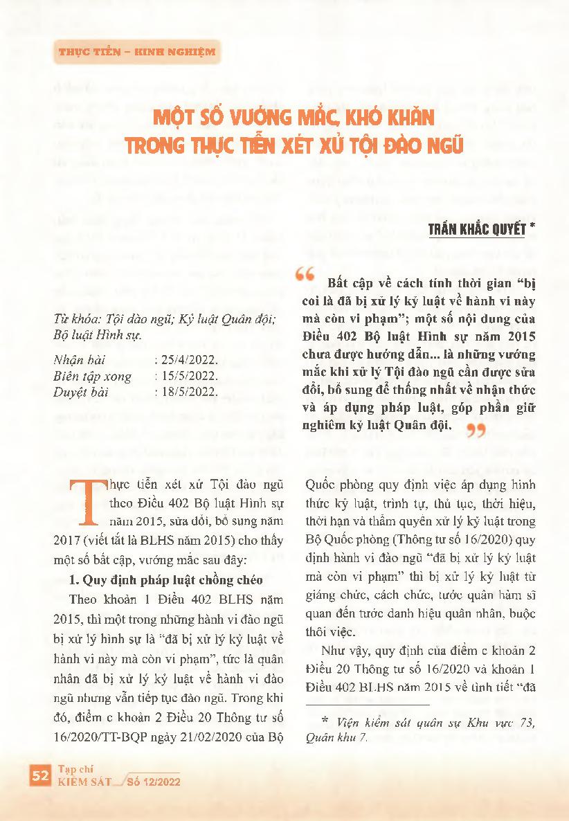 Một số vướng mắc, khó khăn trong thực tiễn xét xử Tội đào ngũ