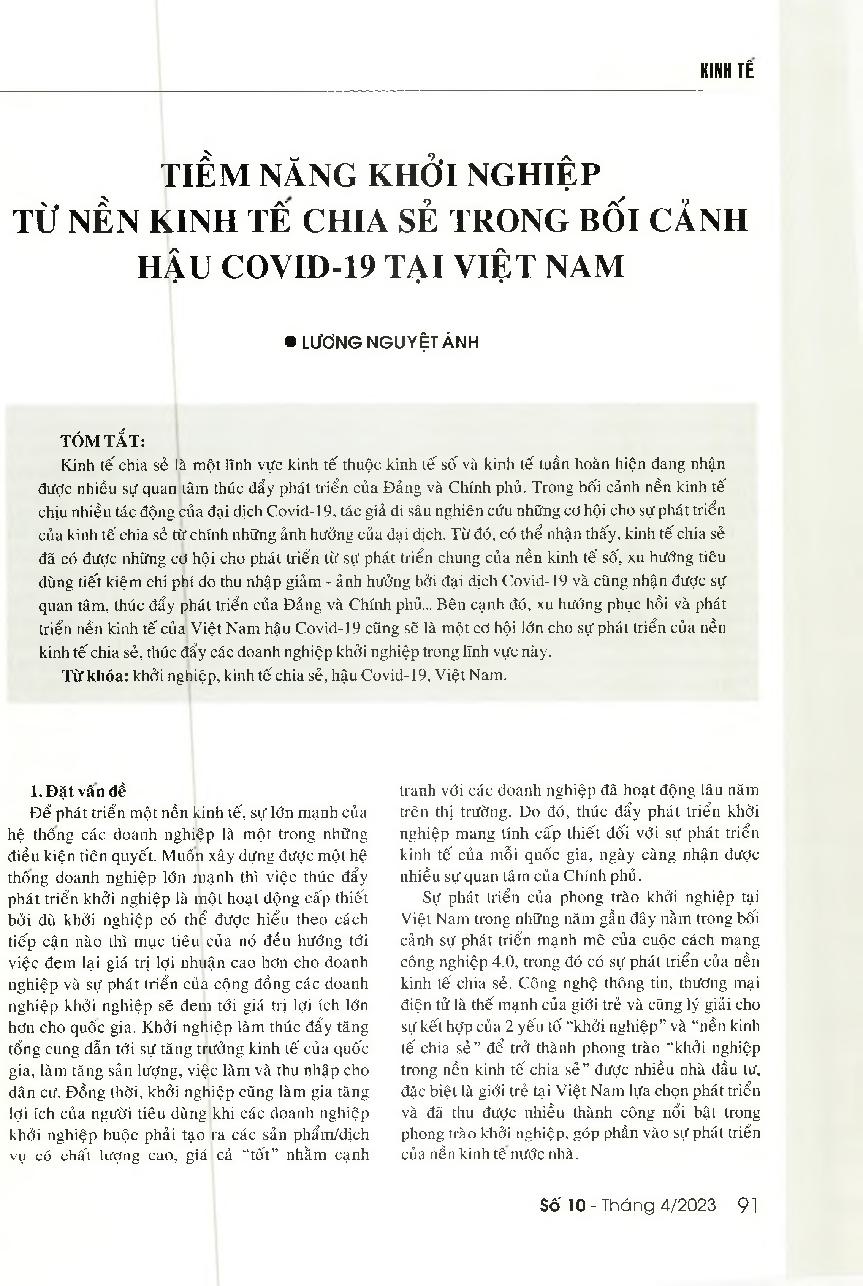 Tiềm năng khởi nghiệp từ nền kinh tế chia sẻ trong bối cảnh hậu Covid -19 tại Việt Nam