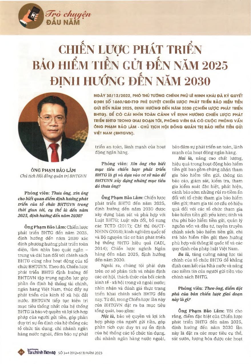 Chiến lược phát triển Bảo hiểm Tiền gửi đến năm 2025, định hướng đến năm 2030 = The strategy on deposit insurance development to 2025, with orientation to 2030
