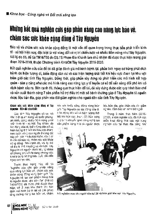 Những kết quả nghiên cứu góp phần nâng cao năng lực bảo vệ, chăm sóc sức khỏe cộng đồng ở Tây Nguyên = The research results contribute to improving the capacity of community health protection and care in the Central Highlands