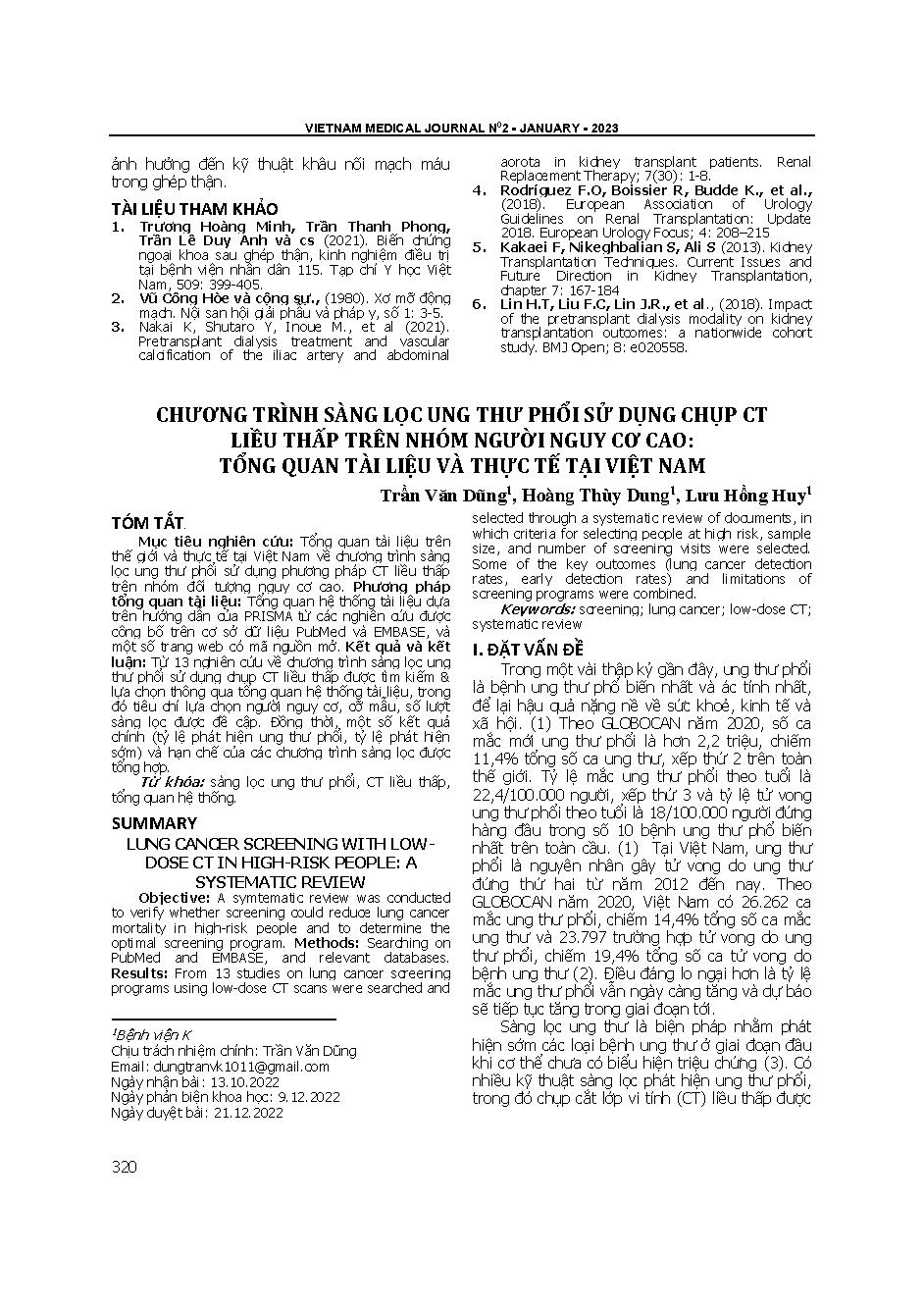 Chương trình sàng lọc ung thư phổi sử dụng chụp ct liều thấp trên nhóm người nguy cơ cao: Tổng quan tài liệu và thực tế tại Việt Nam = Lung cancer screening with low-dose CT in high-risk people: A systematic review