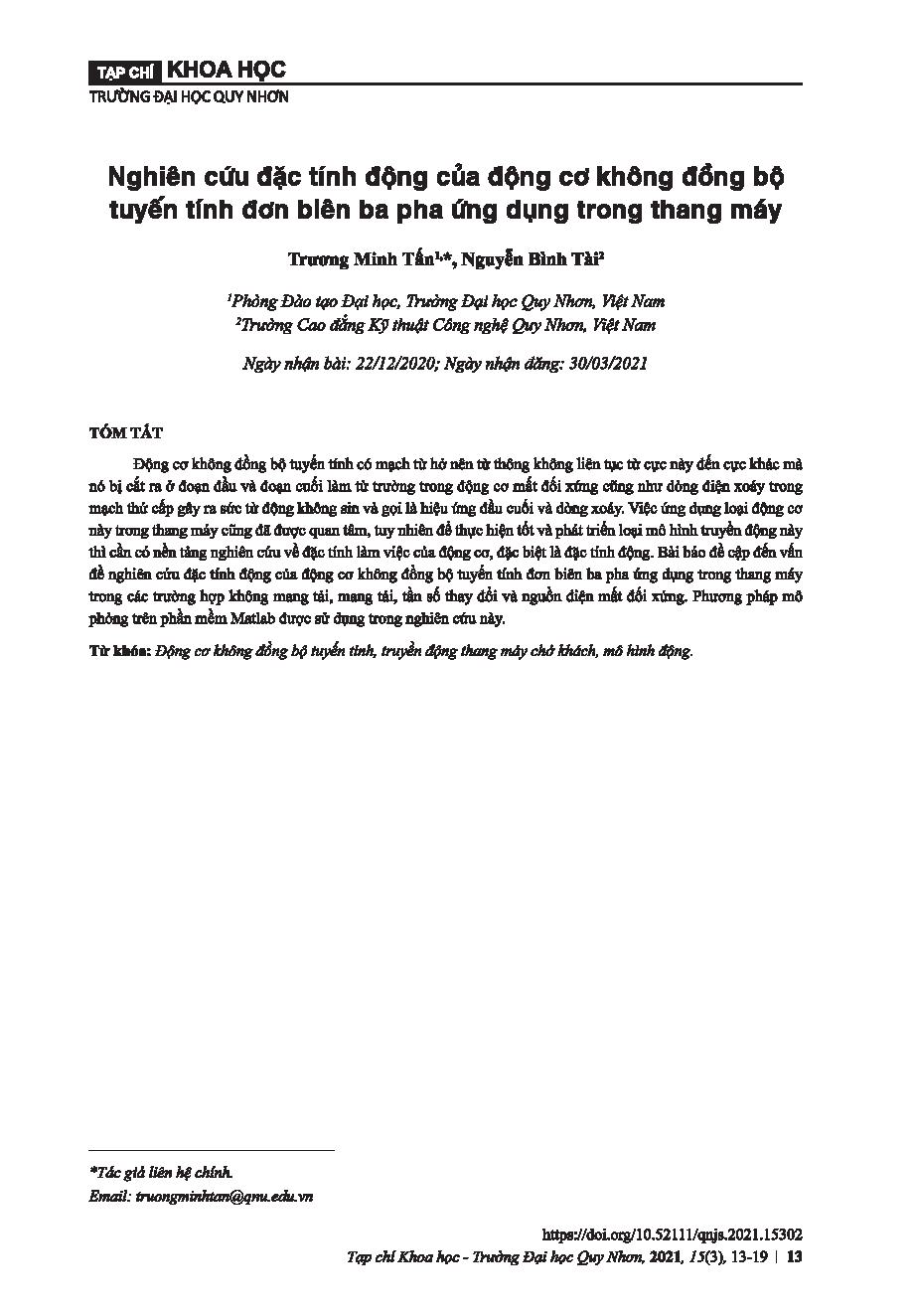 Nghiên cứu đặc tính động của động cơ không đồng bộ tuyến tính đơn biên ba pha ứng dụng trong thang máy