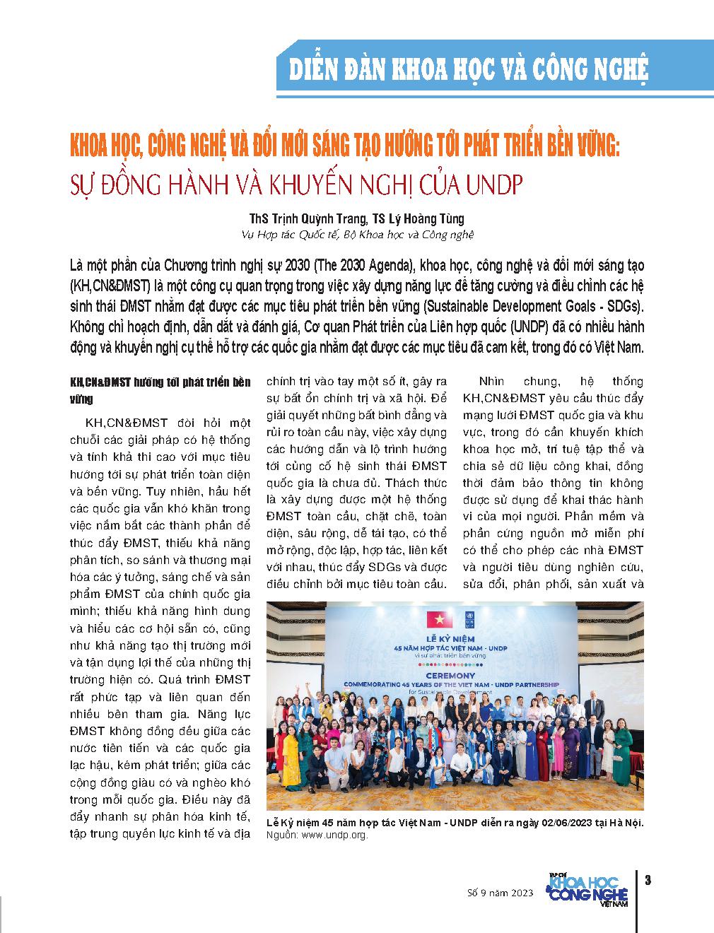 Khoa học, công nghệ và đổi mới sáng tạo hướng tới phát triển bền vững: Sự đồng hành và khuyến nghị của UNDP