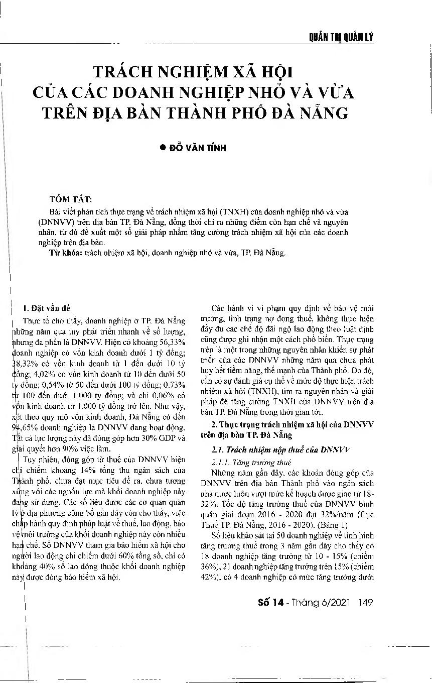 Trách nhiệm xã hội của các doanh nghiệp nhỏ và vừa trên địa bàn Thành phố Đà Nẵng = Social responsibility of small and medium-sized enterprises in Da Nang City