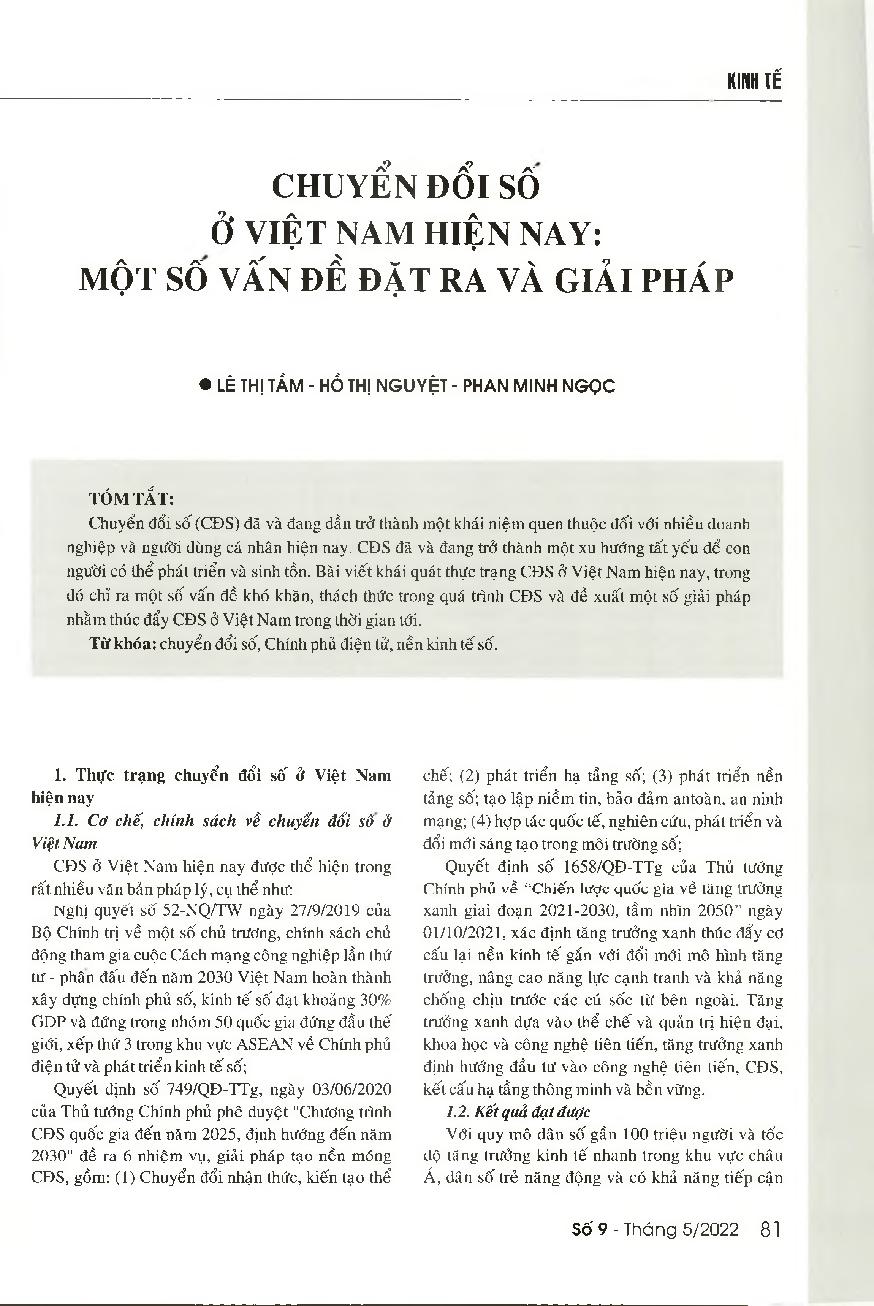 Chuyển đổi số ở Việt Nam hiện nay: Một số vấn đề đặt ra và giải pháp = The current digital transformation process in Vietnam: Some challenges and solutions
