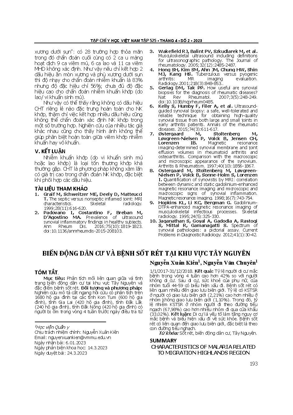 Biến động dân cư và bệnh sốt rét tại khu vực Tây Nguyên = Characteristics of malaria related to migration Highlands region