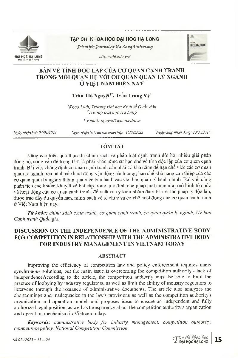 Bàn về tính độc lập của cơ quan cạnh tranh trong mối quan hệ với cơ quan quản lý ngành ở Việt Nam hiện nay