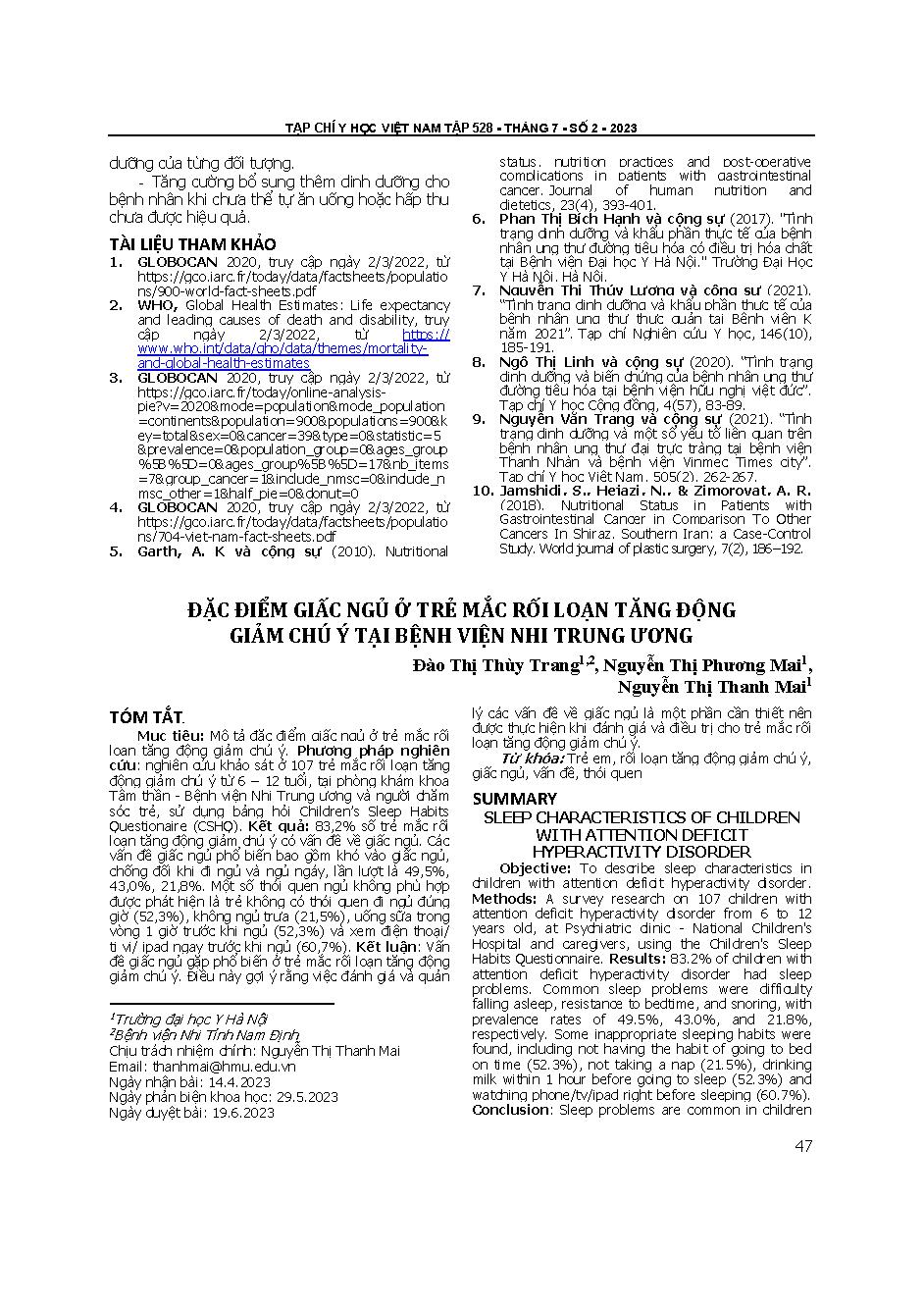 Đặc điểm giấc ngủ ở trẻ mắc rối loạn tăng động giảm chú ý tại Bệnh viện Nhi Trung ương