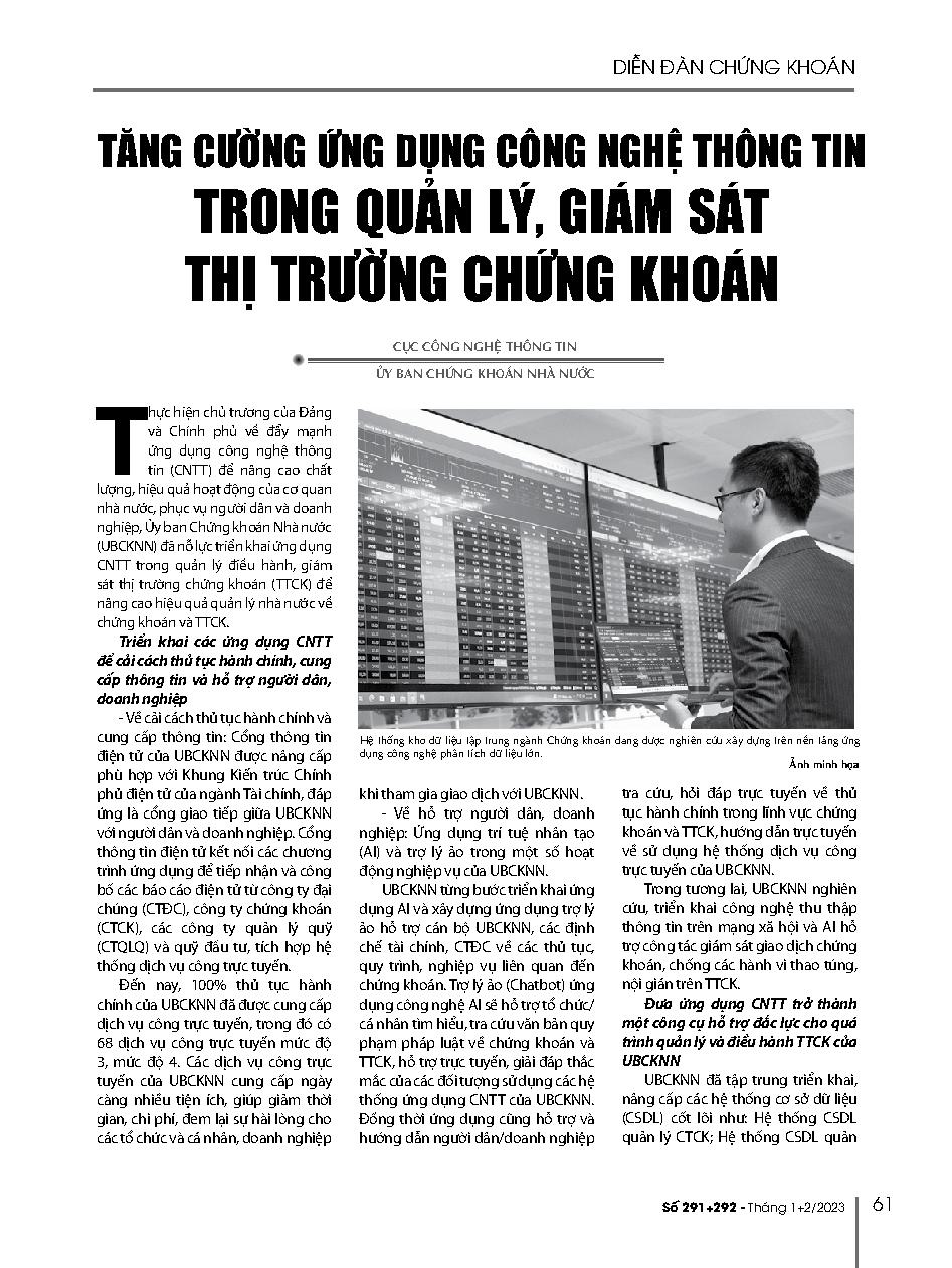 Tăng cường ứng dụng công nghệ thông tin trong quản lý, giám sát thị trường chứng khoán = Expanding it application in securities market regulation, supervision