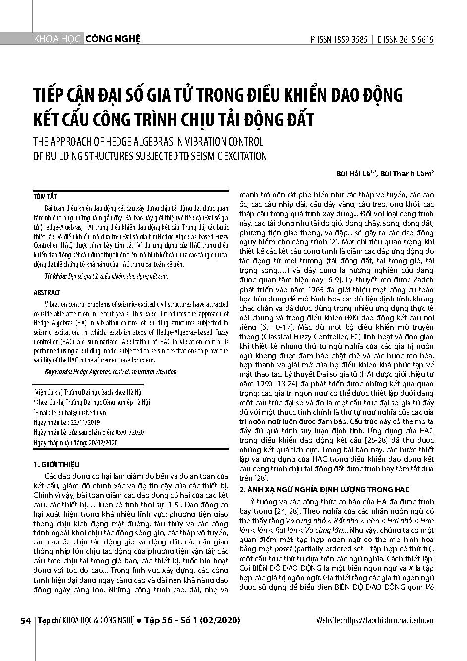 TIẾP CẬN ĐẠI SỐ GIA TỬ TRONG ĐIỀU KHIỂN DAO ĐỘNG KẾT CẤU CÔNG TRÌNH CHỊU TẢI ĐỘNG ĐẤT = THE APPROACH OF HEDGE ALGEBRAS IN VIBRATION CONTROL OF BUILDING STRUCTURES SUBJECTED TO SEISMIC EXCITATION