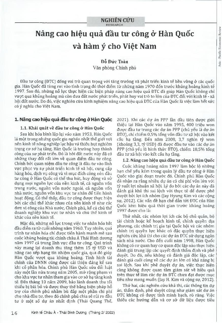 Nâng cao hiệu quả đầu tư công ở Hàn Quốc và hàm ý cho Việt Nam