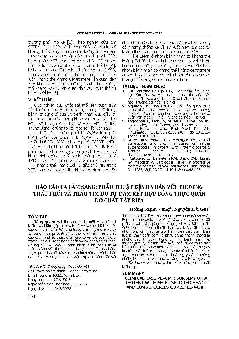 Báo cáo ca lâm sàng: Phẫu thuật bệnh nhân vết thương thấu phổi và thấu tim do tự đâm kết hợp bỏng thực quản do chất tẩy rửa