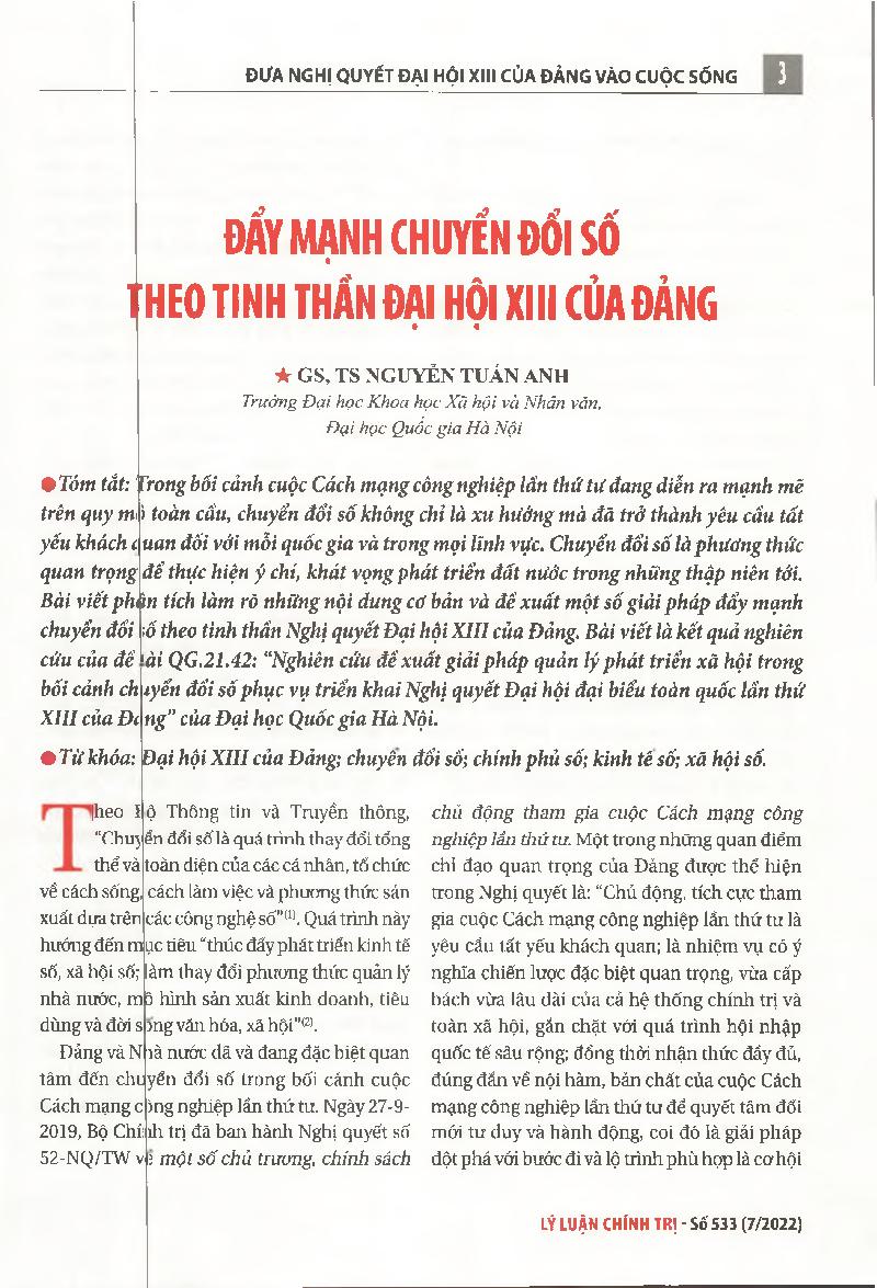 Đẩy mạnh chuyển đổi số theo tinh thần Đại hội XIII của Đảng = Promote digital transformation in the spirit ofthe 13th Party Congress