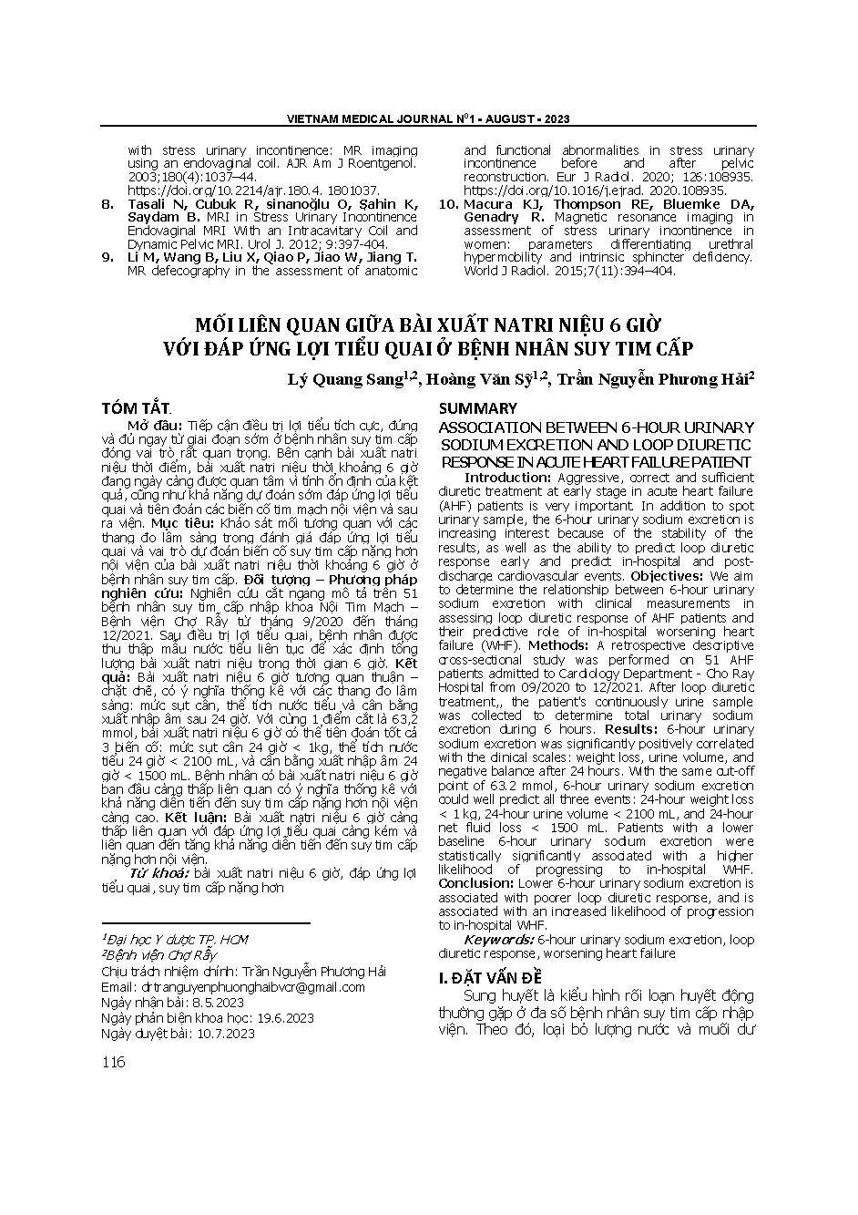 Mối liên quan giữa bài xuất natri niệu 6 giờ với đáp ứng lợi tiểu quai ở bệnh nhân suy tim cấp