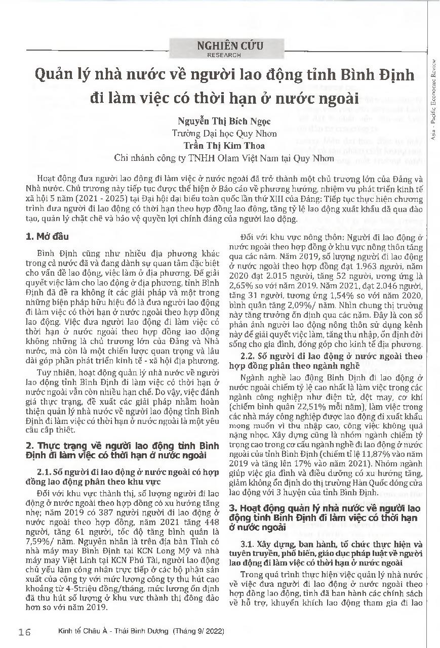 Quản lý nhà nước về người lao động tỉnh Bình Định đi làm việc có thời hạn ở nước ngoài.