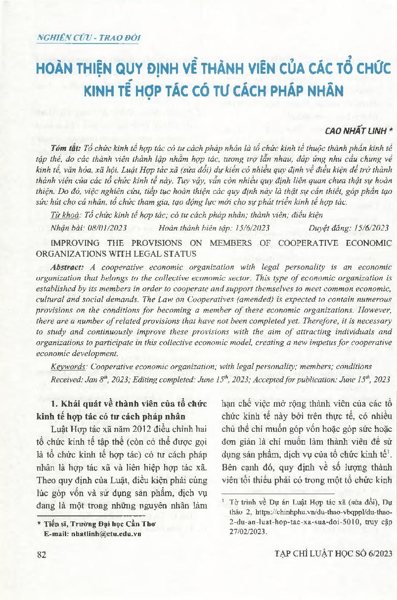 Hoàn thiện quy định về thành viên của các tổ chức kinh tế hợp tác có tư cách pháp nhân = Improving the provisions on members of cooperative economic organizations with legal status