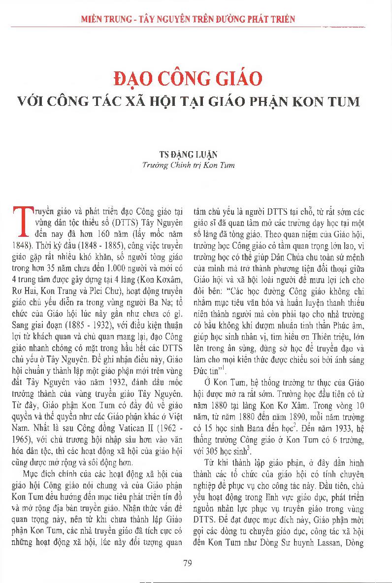 Đạo công giáo với công tác xã hội tại giáo phận Kon Tum