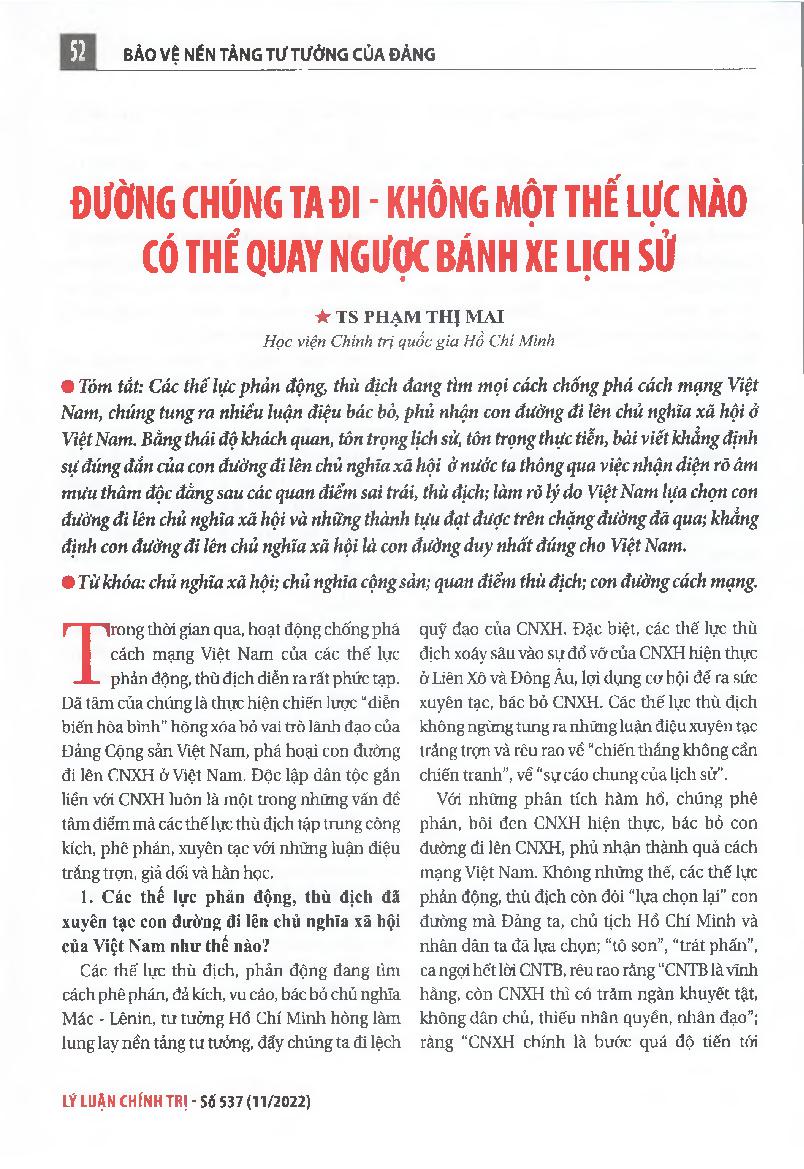 Đường chúng ta đi - không một thế lực nào có thể quay ngược bánh xe lịch sử
