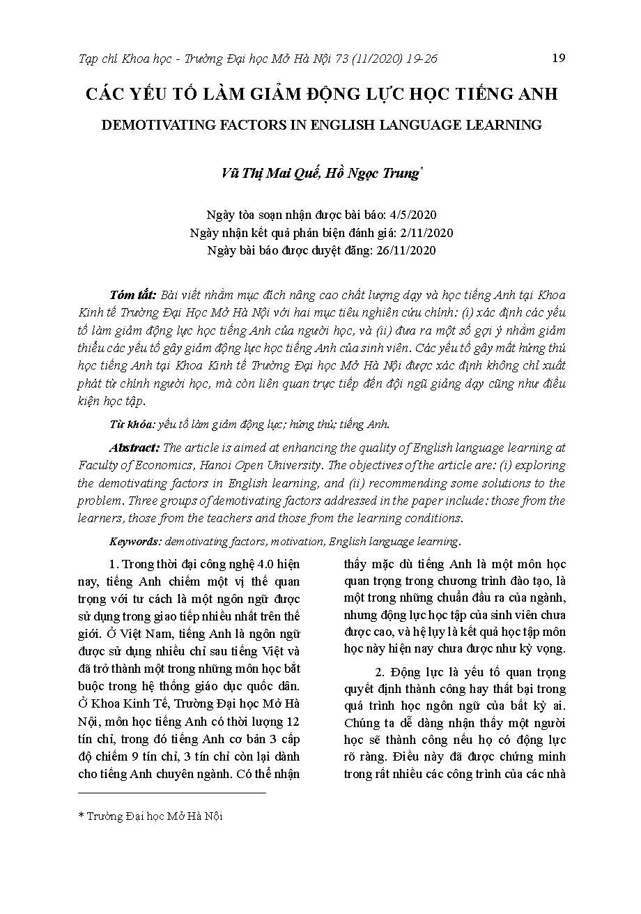 Các yếu tố làm giảm động lực học tiếng Anh = Demotivating factors in English language learning