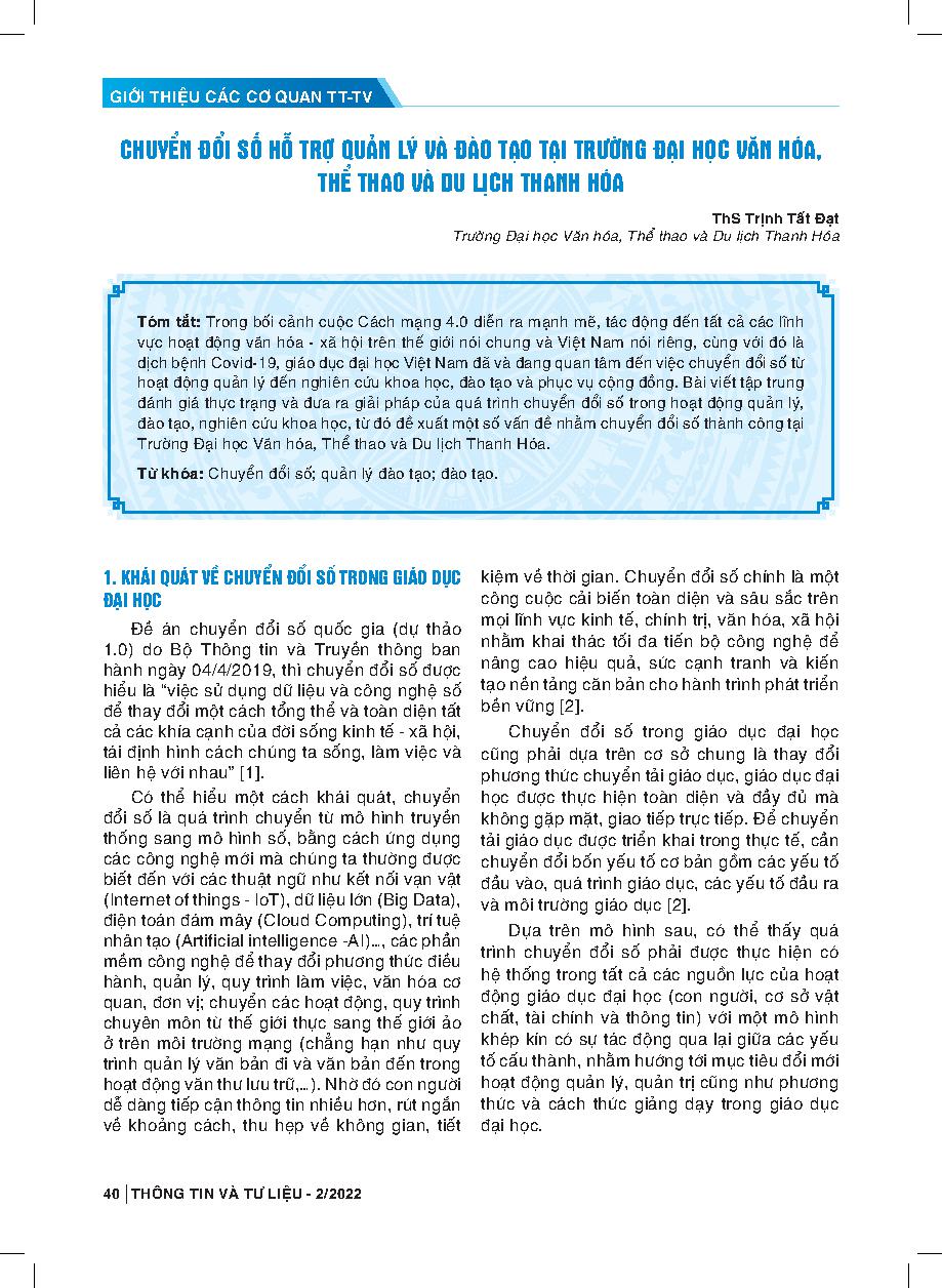 Chuyển đổi số hỗ trợ quản lý và đào tạo tại trường Đại học Văn hóa, Thể thao và Du lịch Thanh Hóa