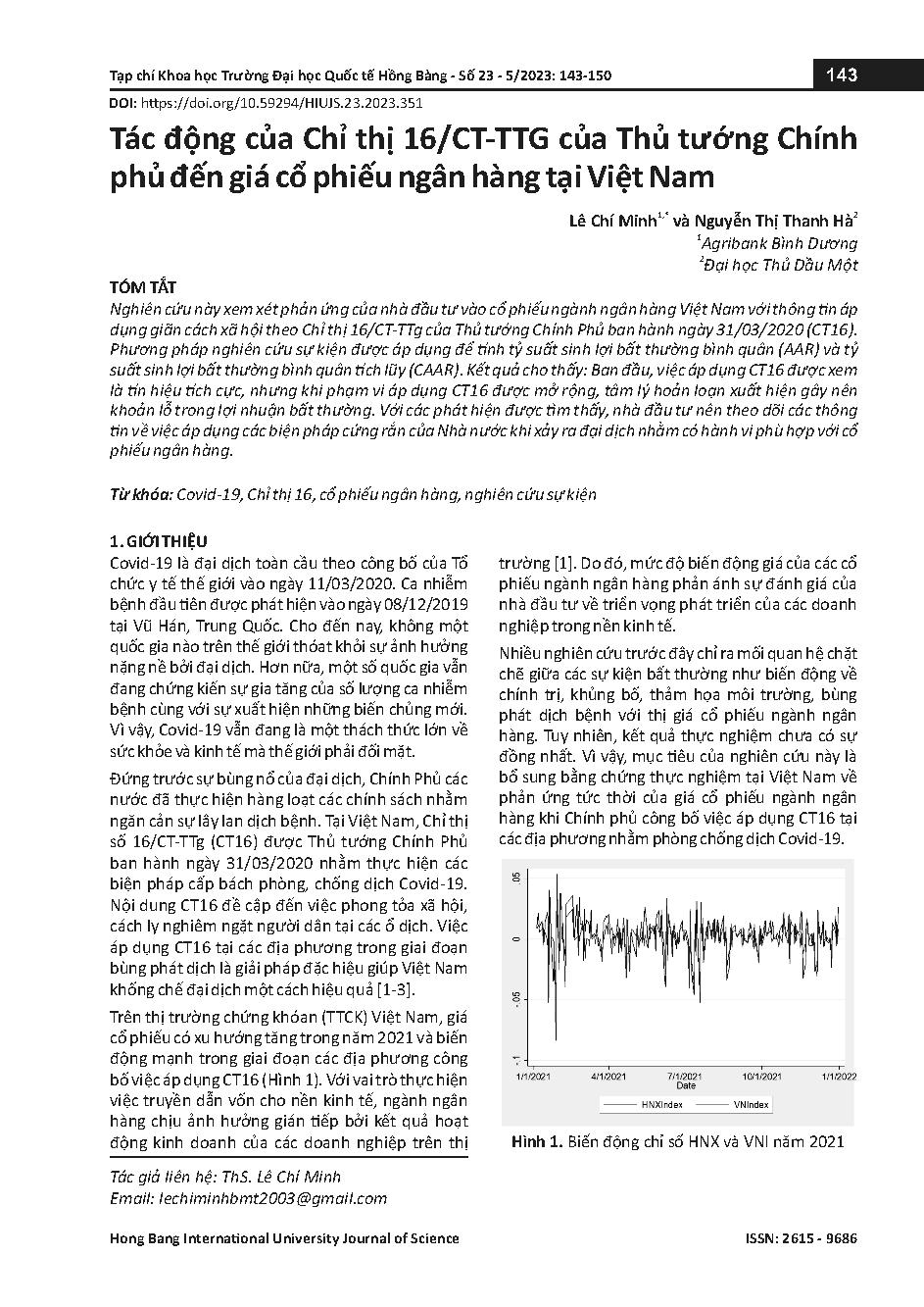 Tác động của Chỉ thị 16/CT-TTG của Thủ tướng Chính phủ đến giá cổ phiếu ngân hàng tại Việt Nam = The impact of 16/CT-TTG of Prime Minister directive on banking stocks in Vietnam