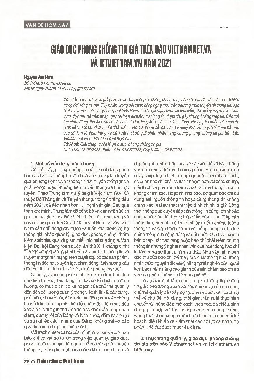 Phòng chống tin giả trên báo Vietnamnet.vn và Ictvietnam.vn năm 2021