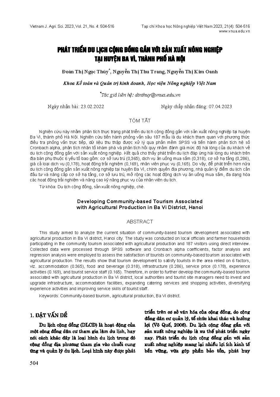 Phát triển du lịch cộng đồng gắn với sản xuất nông nghiệp tại huyện Ba Vì, thành phố Hà Nội