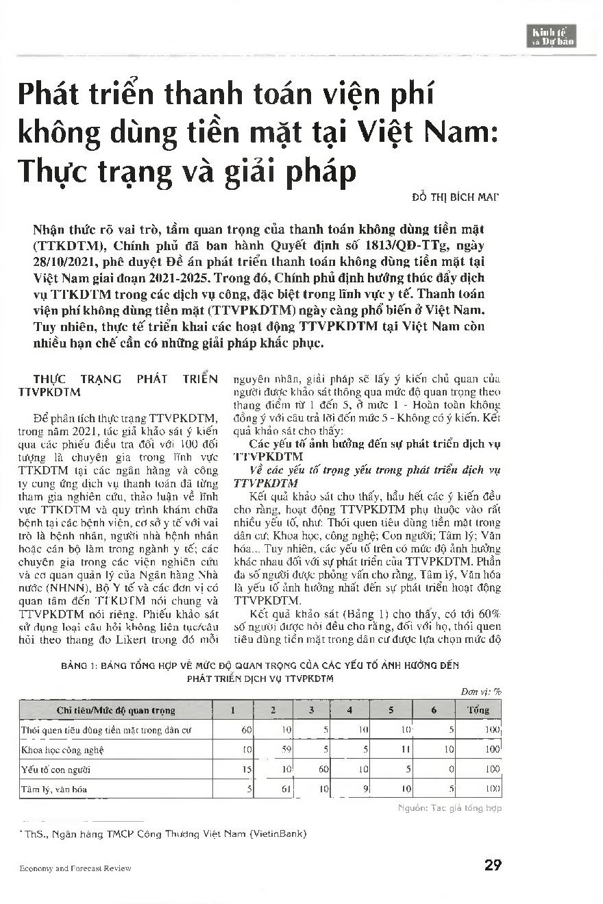 Phát triển thanh toán viện phí không dùng tiền mặt tại Việt Nam: Thực trạng và giải pháp