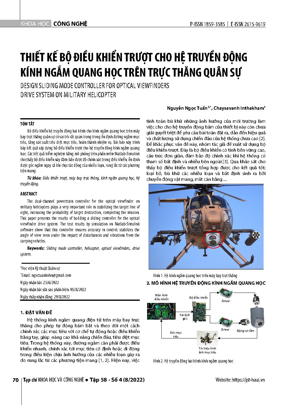 Thiết kế bộ điều khiển trượt cho hệ truyền động kính ngắm quang học trên trực thăng quân sự = Design sliding mode controller for optical viewfinders drive system on military helicopter