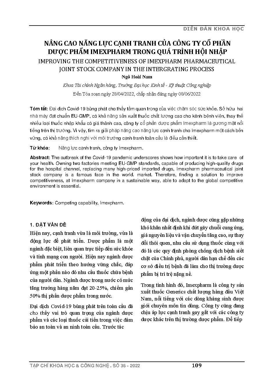 Nâng cao năng lực cạnh tranh của công ty cổ phần dược phẩm Imexpharm trong quá trình hội nhập