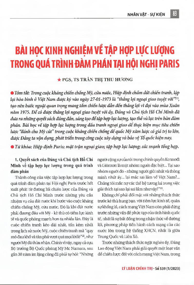 Bài học kinh nghiệm về tập hợp lực lượng trong quá trình đàm phán tại Hội nghị Paris