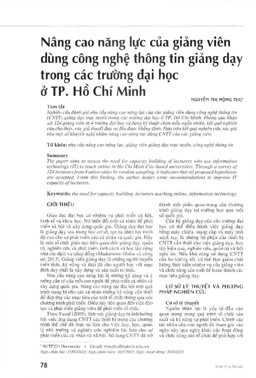 Nâng cao năng lực của giảng viên dùng công nghệ thông tin giảng dạy trong các trường đại học ở TP. Hồ Chí Minh