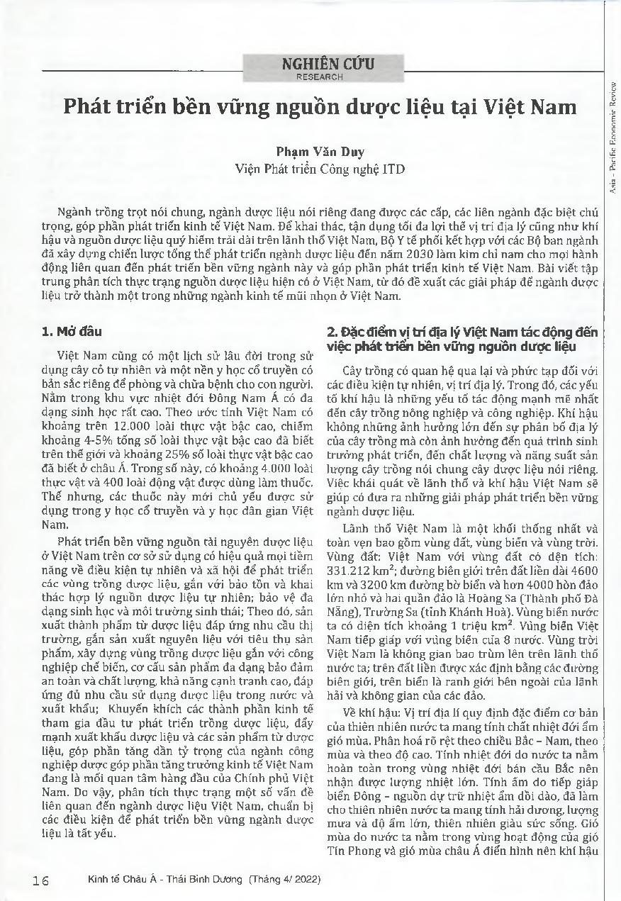 Phát triển bền vững nguồn dược liệu tại Việt Nam