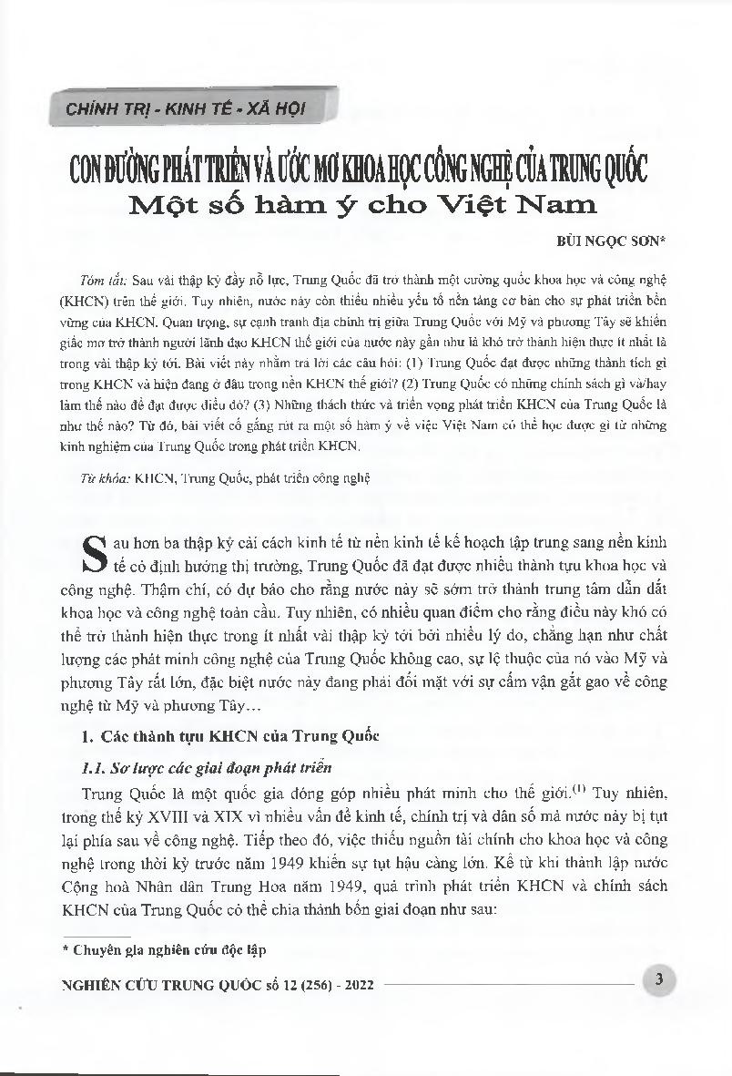 Con đường phát triển và ước mơ khoa học công nghệ của Trung Quốc - Một số hàm ý cho Việt Nam = China&; 39;s development path and its science and technology dream - Some implications for Vietnam