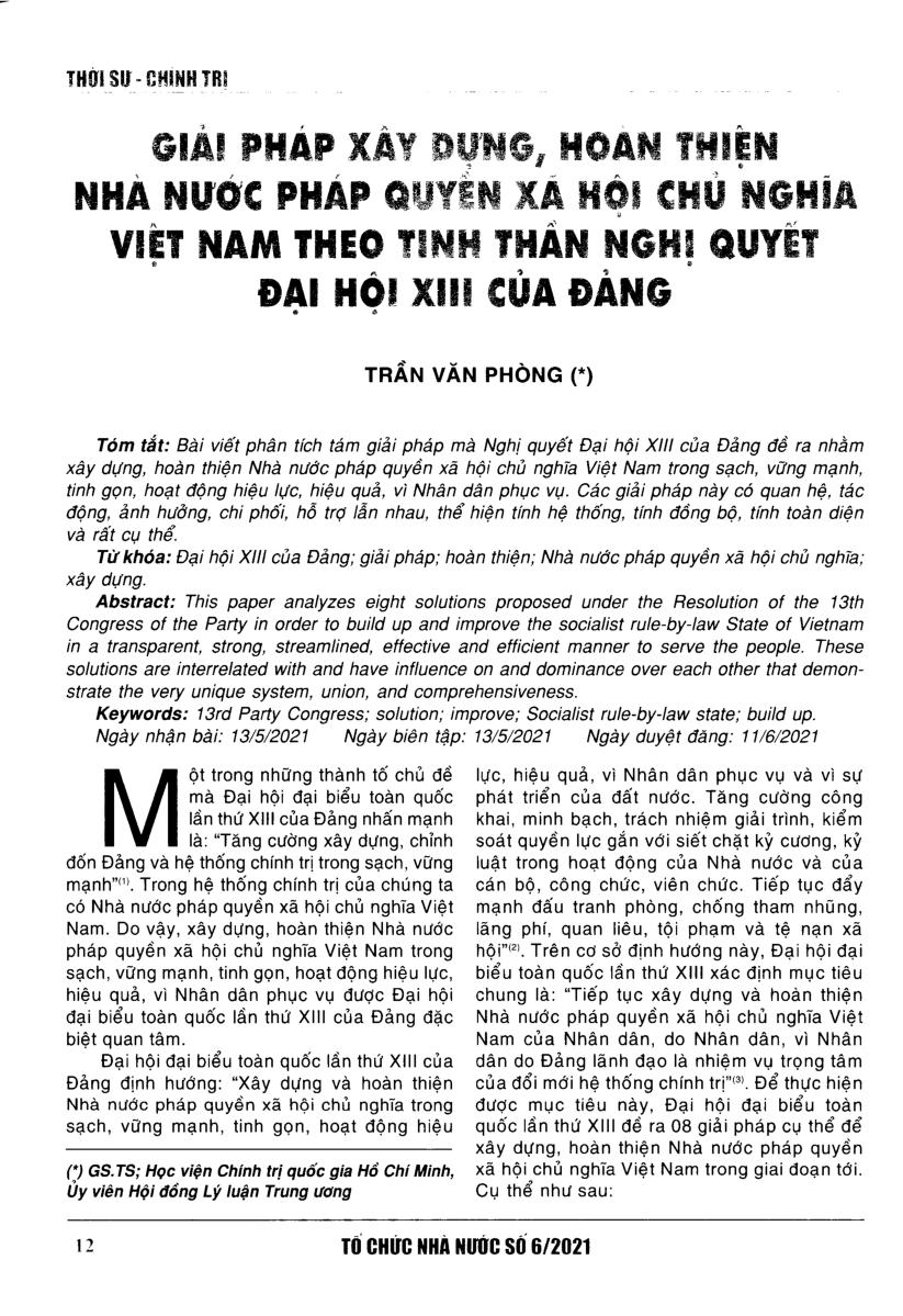 Giải pháp xây dựng, hoàn thiện nhà nước pháp quyền xã hội chủ nghĩa Việt Nam theo tinh thần Nghị quyết Đại hội XIII của Đảng