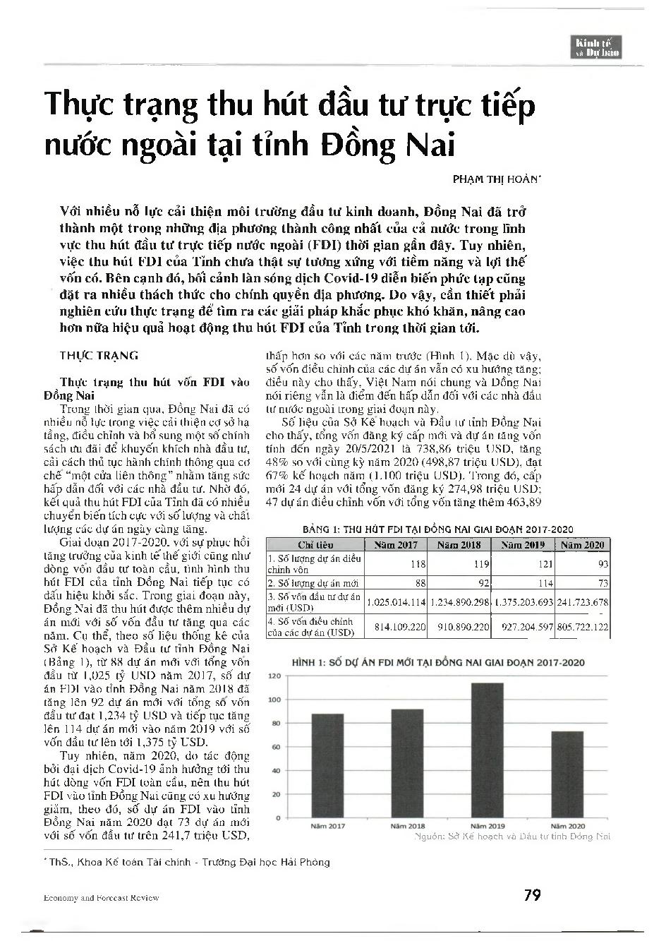 Thực trạng thu hút đầu tư trực tiếp nước ngoài tại tỉnh Đồng Nai