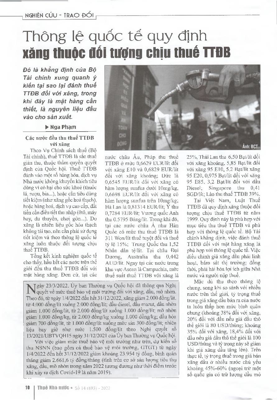 Thông lệ quốc tế quy định xăng thuộc đối tượng chịu thuế TTĐB = International practice stipulates that gasoline is subject to excise tax